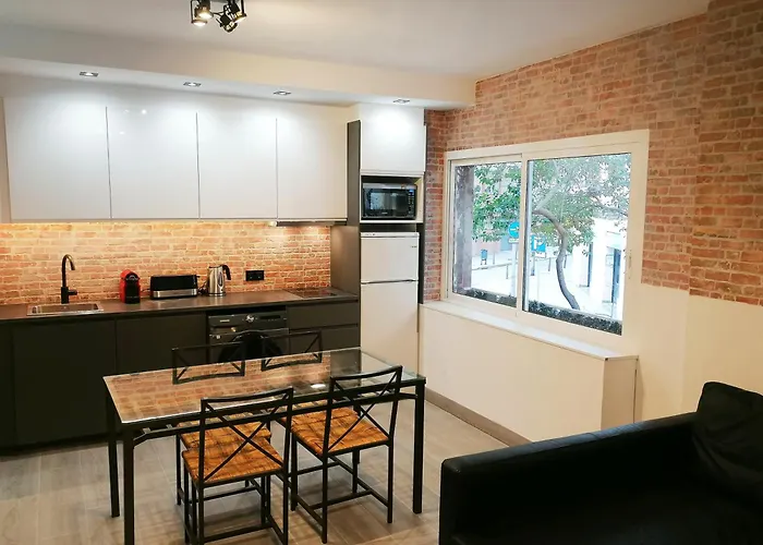 An oven and a dishwasher are available in an equipped kitchen. La Fira - Paralelo 1 apartment is steps from the nearest bus stop Pg de l'Exposicio - Santa Madrona.
